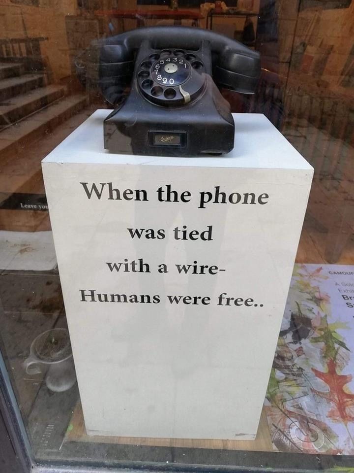 When I saw this picture on Facebook, I was immediately transported to the days when we got our first landline at home. We were in awe of such a magical device. How times have changed and what a different world we live in. Our phones have become so powerful and we’ve become completely dependent on them. And the sad part is that our behavior, our dependence, regardless of its consequences, has become acceptable, common, and normal. In a sense, we are normalizing a dependence.