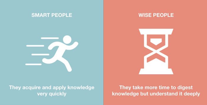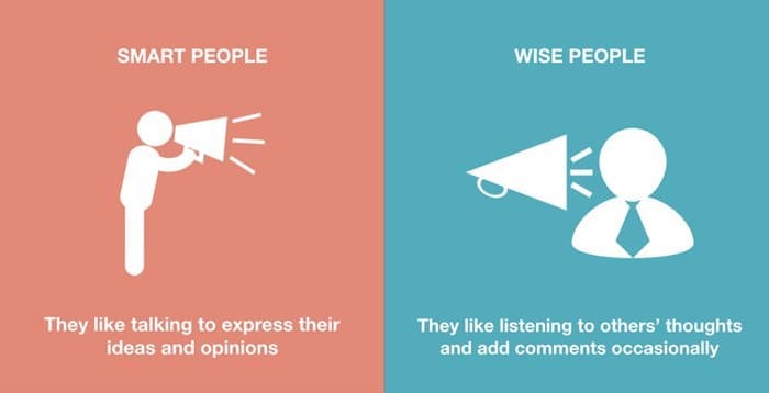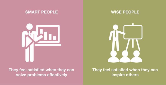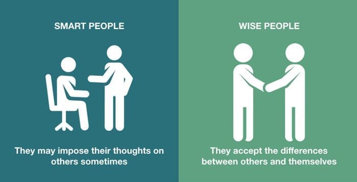The difference between being smart and being wise might just sound like a question of semantics, but really there’s much more to it than that! Smart people focus absorbing as much knowledge as possible and showing the world that they’re cleverer than average, whereas wise people also find knowledge within and aren’t so focussed on showing it off. Of course, a smart person can become a wise person if they’re willing to make a few changes and put in some effort. I came across these eight graphics on Lifehack which show the major differences between being wise and being smart. Take a look and see for yourself!