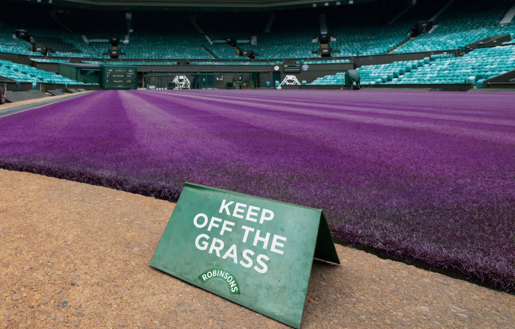 The iconic grass at Wimbledon has been turned purple ahead of the event this summer. Transformed from its perfectly pruned green, to bright purple, the makeover of Centre Court is in support of Robinsons new Blackcurrant squash.