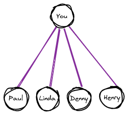 Your model looks like a triangle where everyone depends on you with every person needing a different amount of attention at any given point of time.