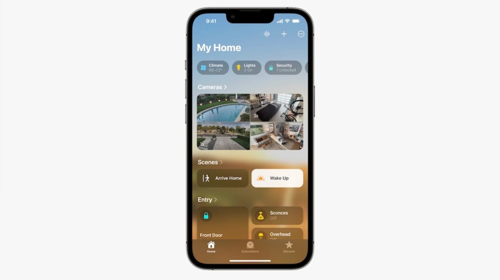 - Apple says it has reimagined the Home app “from the ground up.” All of your various devices in different rooms are brought into one screen, including a side-scrolling view of all of your HomeKit-enabled cameras.