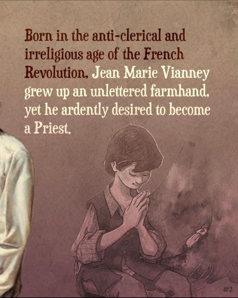 At that time in France, the winds of Revolution were blowing. Young John made his Confession at home, rather than in a church, to a “non-juring” priest – that is, a priest who had not sworn loyalty to the revolutionary government. The same priest gave him his First Communion in a barn, during an “underground” Mass. At the age of 17, John Vianney felt the call to the priesthood. “If I am to be a priest,” he said, “I will win many souls for God.”