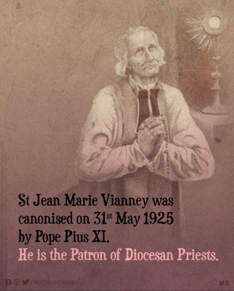 Having given his whole life for God and his parishioners, John Vianney died on 4 August 1859. He was 73 years old. His relics can be found in Ars, in the sanctuary dedicated to him, which is visited by some 450,000 pilgrims every year. He was beatified by Pope St Pius X in 1905, and canonized twenty years later by Pope Pius XI. In 1929, the same Pope proclaimed him the “heavenly patron of all parish priests throughout the world.” During the centenary of his death in 1959, Pope St John XXIII dedicated an encyclical to St John Vianney, pointing him out as exemplary model for priests. Fifty years later, Pope Benedict XVI inaugurated a “Year of Priests” on the 150th anniversary of his birthday into heaven, in order “to deepen the commitment of all priests to interior renewal for the sake of a stronger and more incisive witness to the Gospel in today’s world.”