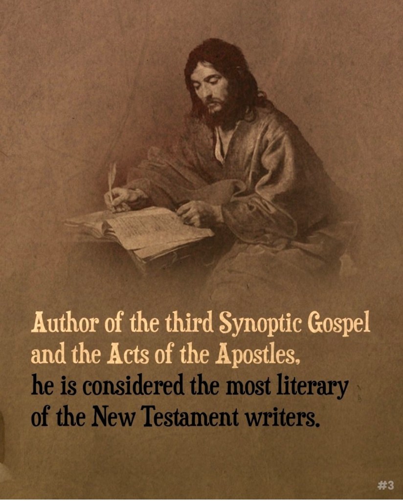 In addition to composing one of the four Gospels, Saint Luke also wrote the Acts of the Apostles, the book immediately following the Gospels. Although Saint Paul wrote more books, Luke’s two contributions are long enough that they actually make up a greater percentage of the New Testament (about 24%) than those of any other author.