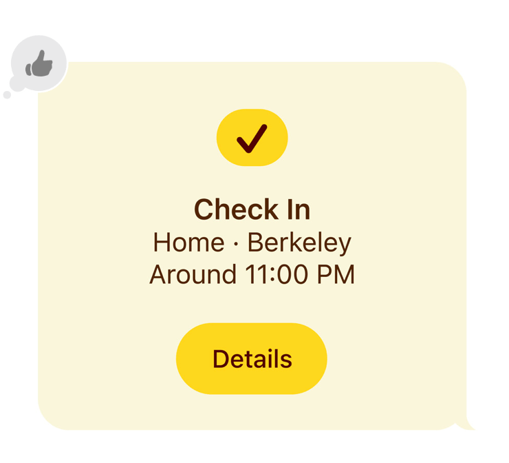 - A new safety feature, Check In, sends a note to a trusted contact when you reach a location — like when you make it home safe after late-night travel. If it’s taking you longer to get to a destination, you’ll be prompted to extend the timer rather than alert your contact. It also shares your battery and signal status. Check In is end-to-end encrypted.