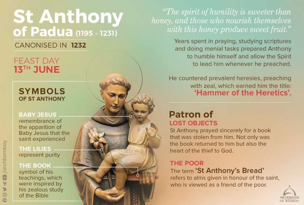 St. Anthony of Padua, born Fernando Martins de Bulhões in Lisbon, Portugal in 1195, was a renowned Franciscan friar, preacher, and theologian. His life was marked by deep spirituality, intellectual brilliance, and a profound commitment to serving others. St. Anthony is widely celebrated for his eloquent preaching, his dedication to the poor and oppressed, and his miraculous ability to find lost items.