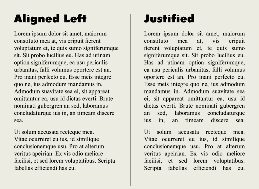Mostly we read text aligned left with a ragged edge, although newspaper columns can still be fully justified. Justification can give a cleaner, more formal look overall, even if the space interruption looks odd. Typesetters can also put space between the letters in words (hence the need for tracking) to enhance the effect.