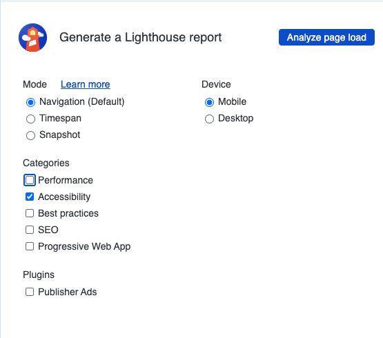 A good first place to start your Accessibility testing journey is automated testing. Accessibility tests are build into Lighthouse, so at the same time you are running your performance tests, you can check Web Accessibility.