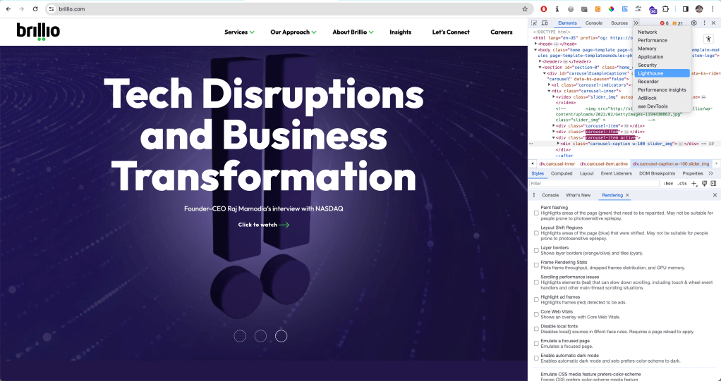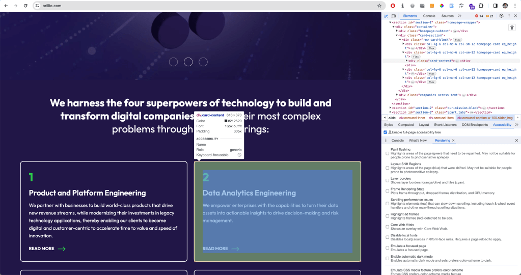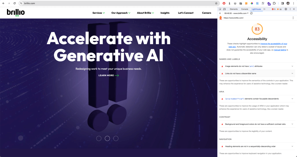 For the purposes of this article, I thought I’d test my organisation’s website brillio.com. Pretty good score for accessibility! :)