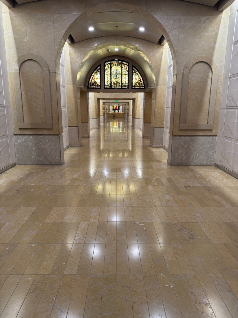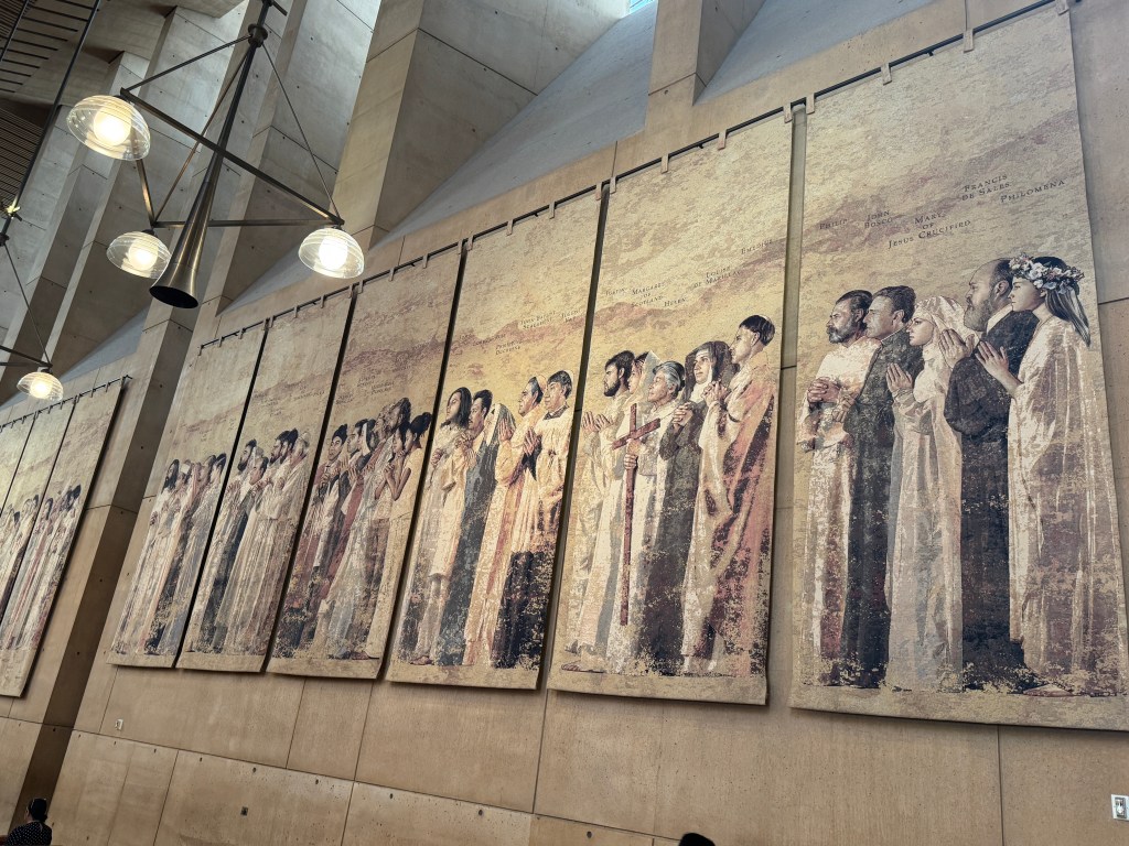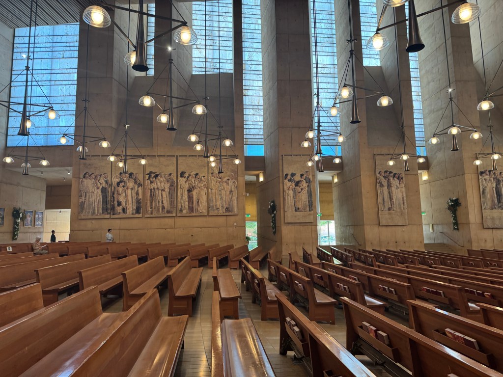 Our trip began on a peaceful note with a visit to the Cathedral of Our Lady of the Angels, a striking architectural landmark in downtown LA. From the moment we stepped onto the plaza, we were struck by the scale and serenity of the place. The cathedral’s modern design—earthy stone, clean lines, and towering ceilings—creates a sacred space that feels both grand and inviting.