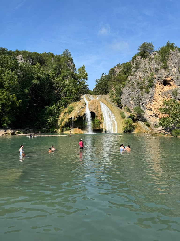 Turner Falls did not disappoint. With its cascading waterfall nestled in the Arbuckle Mountains, it felt like we’d stumbled into a hidden paradise. Some of us dipped our toes in the water, while others went ahead for a swim! We snapped group photos, and let the calm of nature wash over us before packing up for the next stop.
