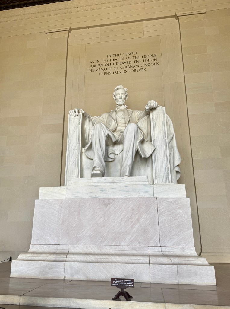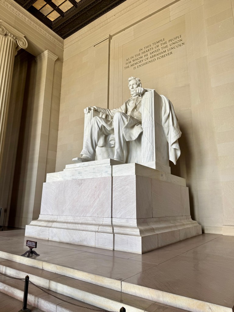 Then came one of my favorite moments of the walk: reaching the Lincoln Memorial. Climbing the steps and seeing Lincoln seated in all his quiet dignity, looking out across the Reflecting Pool toward the Washington Monument—it felt like stepping into history. It’s easy to see why so many important speeches and gatherings have happened right there.