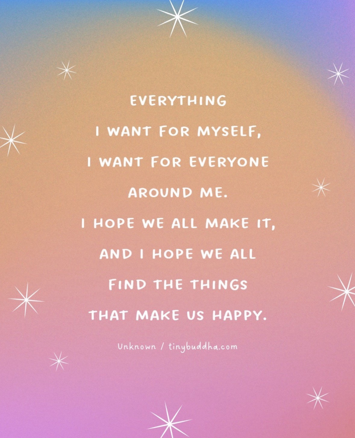So yes, I want everything good for myself. But I want it for everyone around me too. I want us all to make it—to find the work that fills us, the people who get us, the peace that grounds us. I want the kind of happiness that multiplies, not divides.