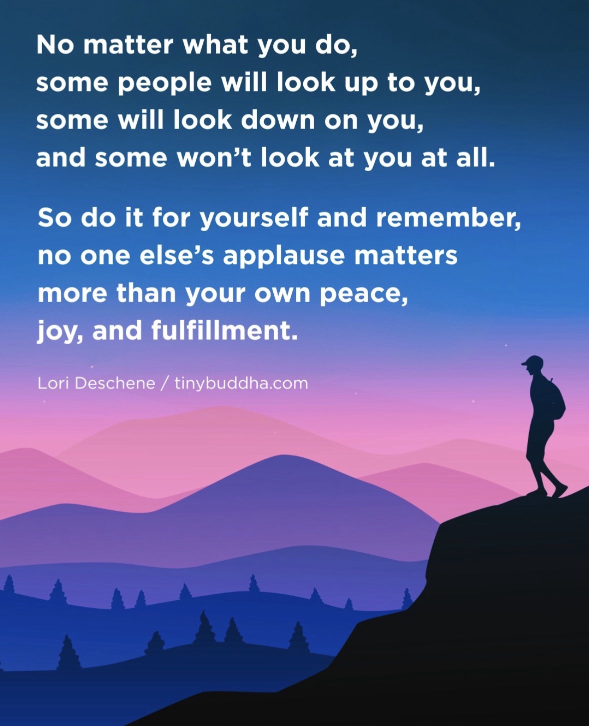 So do it for yourself. Build the life, make the move, take the risk — not because it’ll impress anyone, but because it will make you feel alive. Remember, the loudest applause in the world can’t replace the quiet contentment of being at peace with who you are.