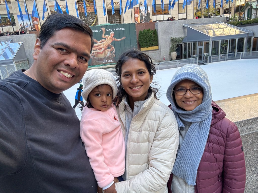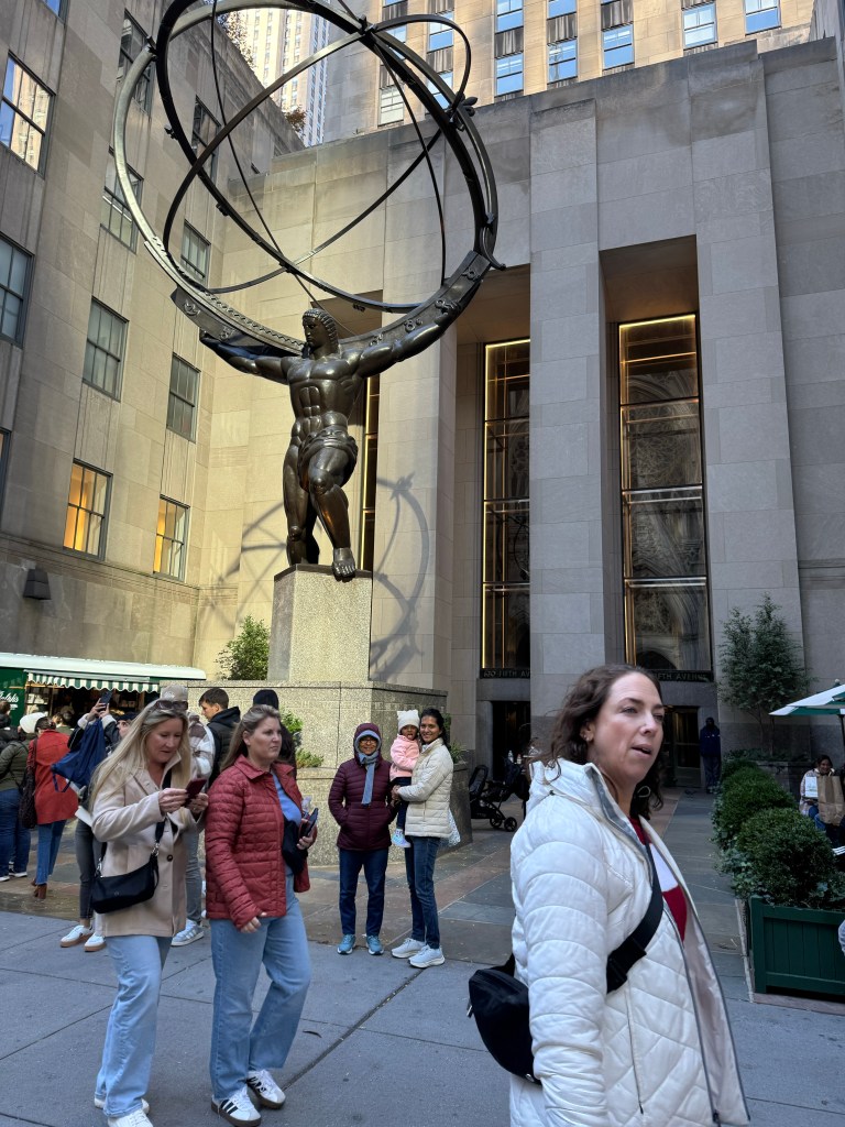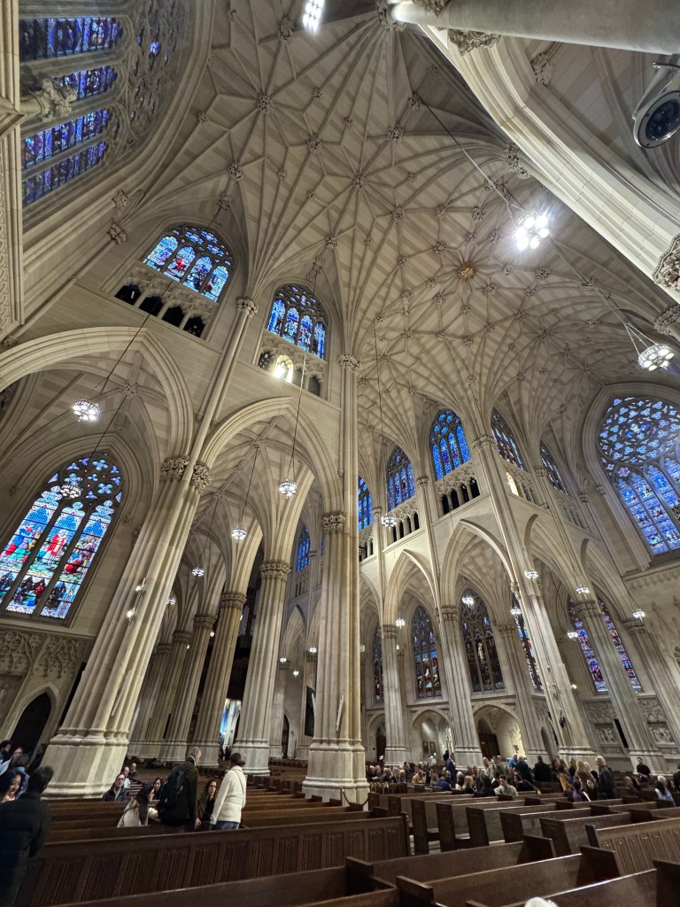 We started our day at Rockefeller Center, where the morning chill made the ice rink sparkle. Watching skaters twirl under the flags felt like stepping into a scene from a holiday movie — cheerful music, warm coffee, and that unmistakable New York energy. Just across the street, St. Patrick’s Cathedral stood in quiet contrast. We slipped inside for a few moments, letting the stillness of the cathedral wash over us. Its stained glass and towering arches made time slow down — a peaceful pause before the rest of the day took off.