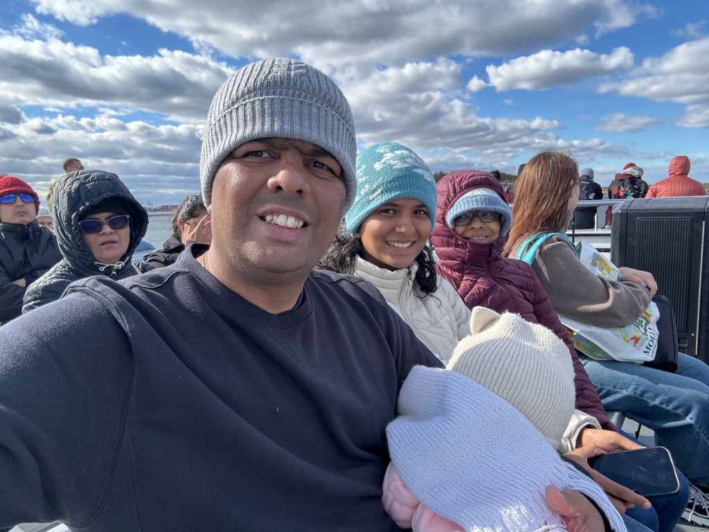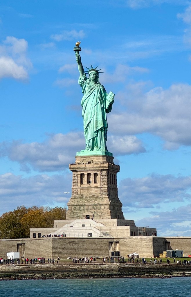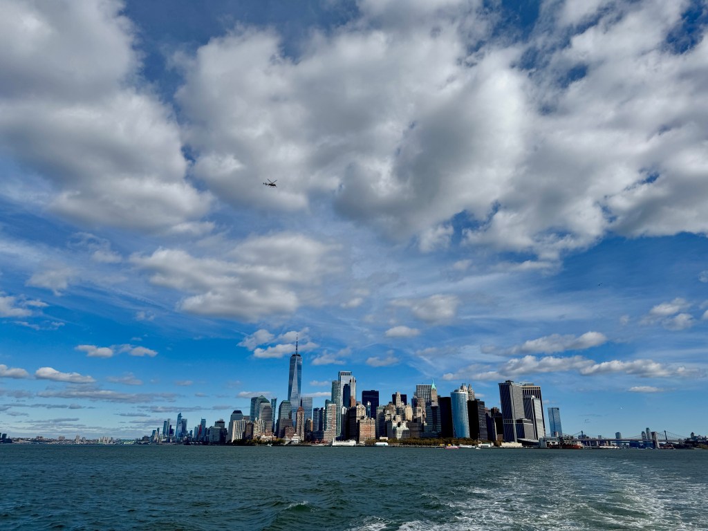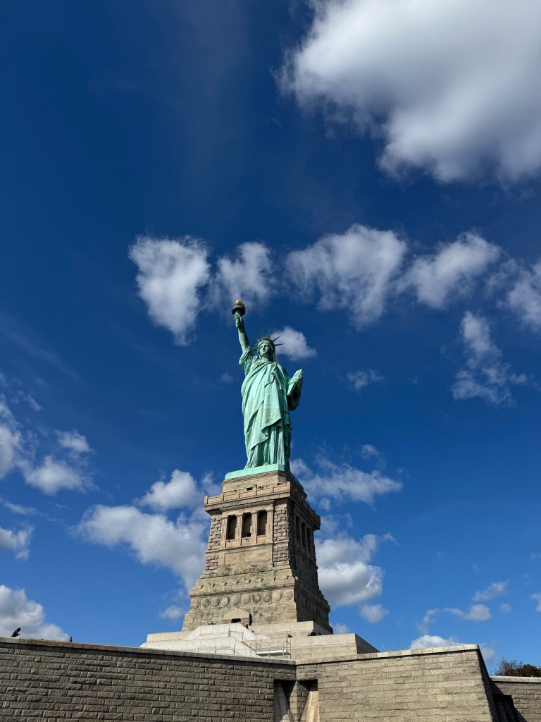 From there, we headed all the way downtown to Battery Park. The wind was crisp, the water alive with movement, and there she was — the Statue of Liberty, standing tall across the harbor. No matter how many times you’ve seen her, there’s always something stirring about that sight. It’s like looking at the very idea of hope.