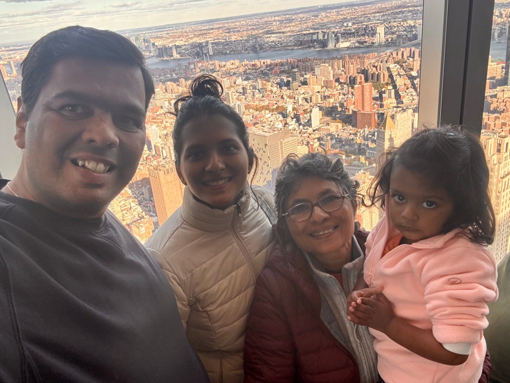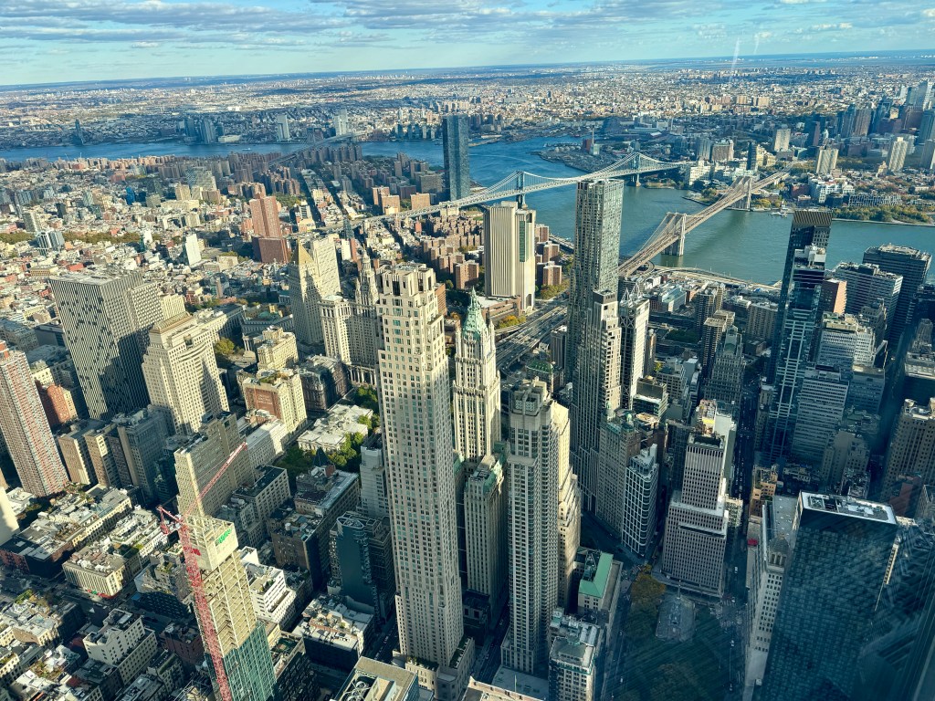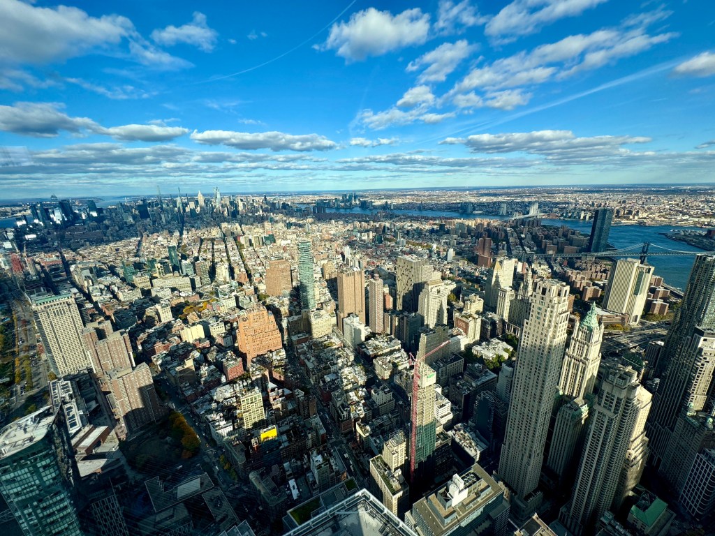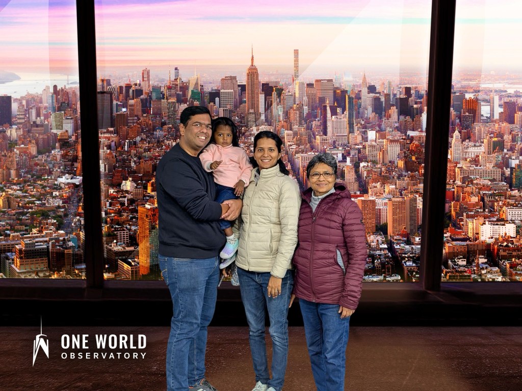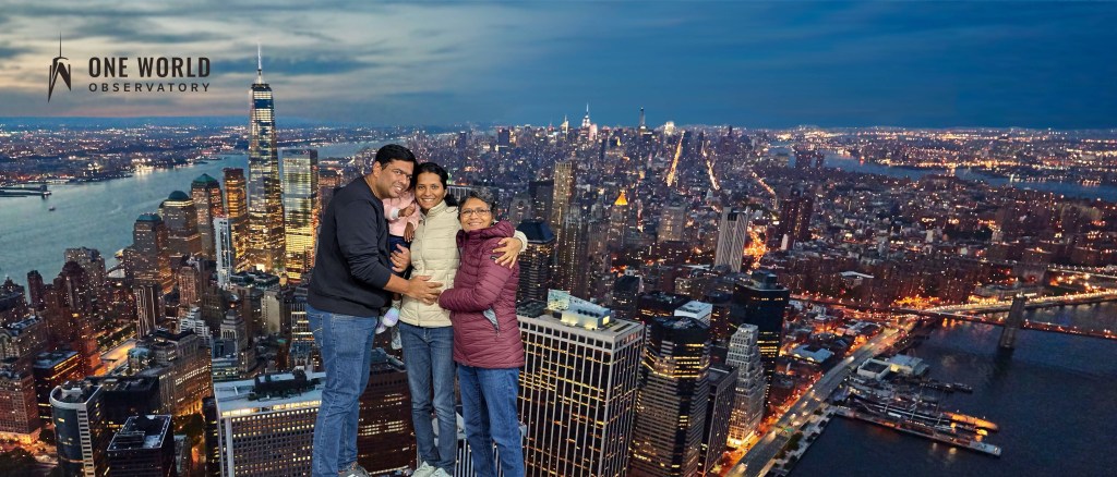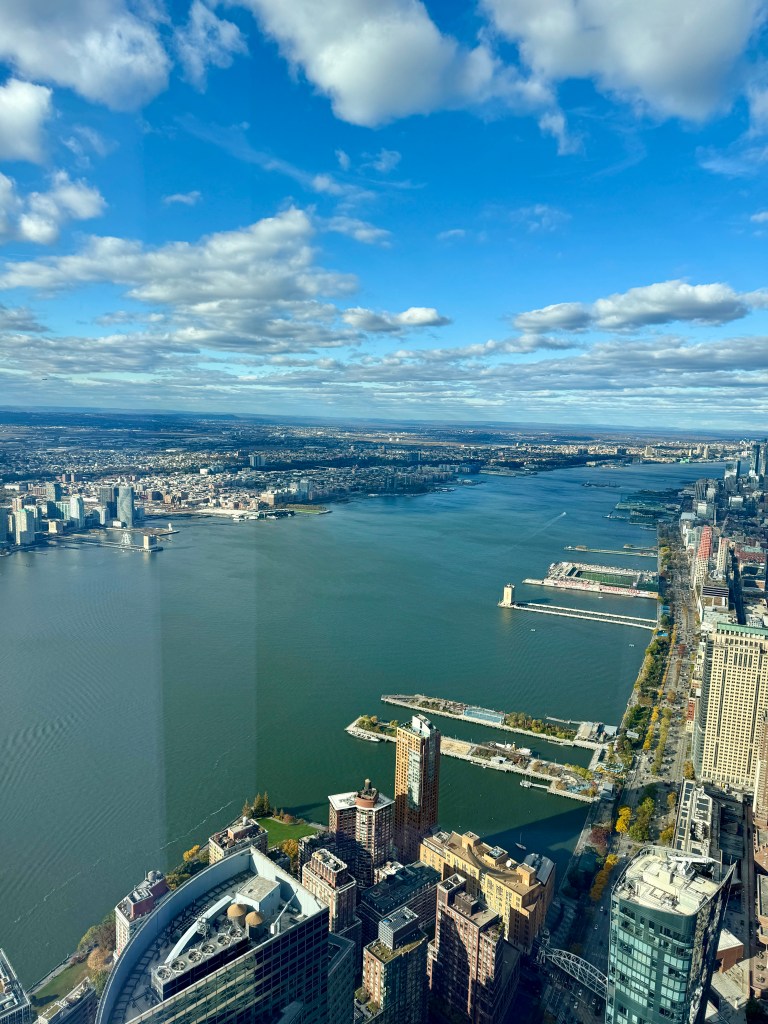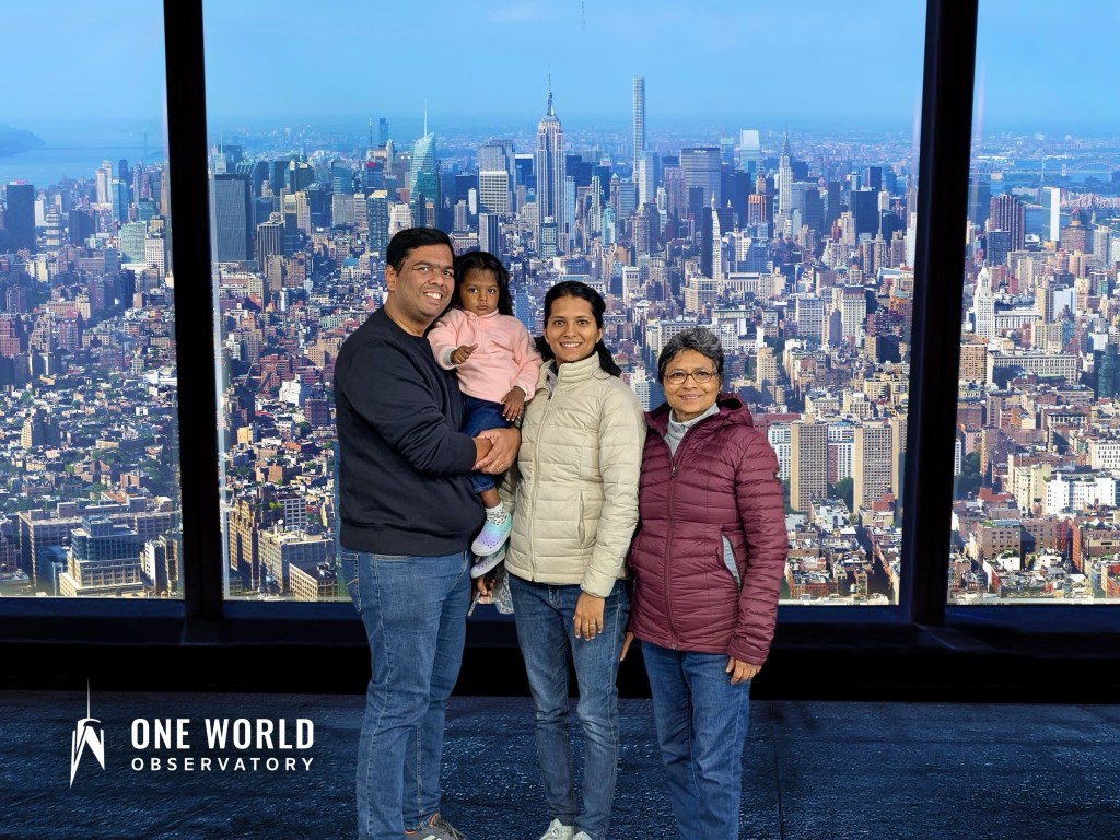 Next up was the One World Observatory. The elevator ride is a show in itself — history flashing across the walls as you rise to the top in seconds. And then suddenly, you’re standing above the city, watching the skyline sprawl endlessly beneath you. We had lunch there, overlooking Manhattan, where every skyscraper felt like a story and every street below like a memory in motion.