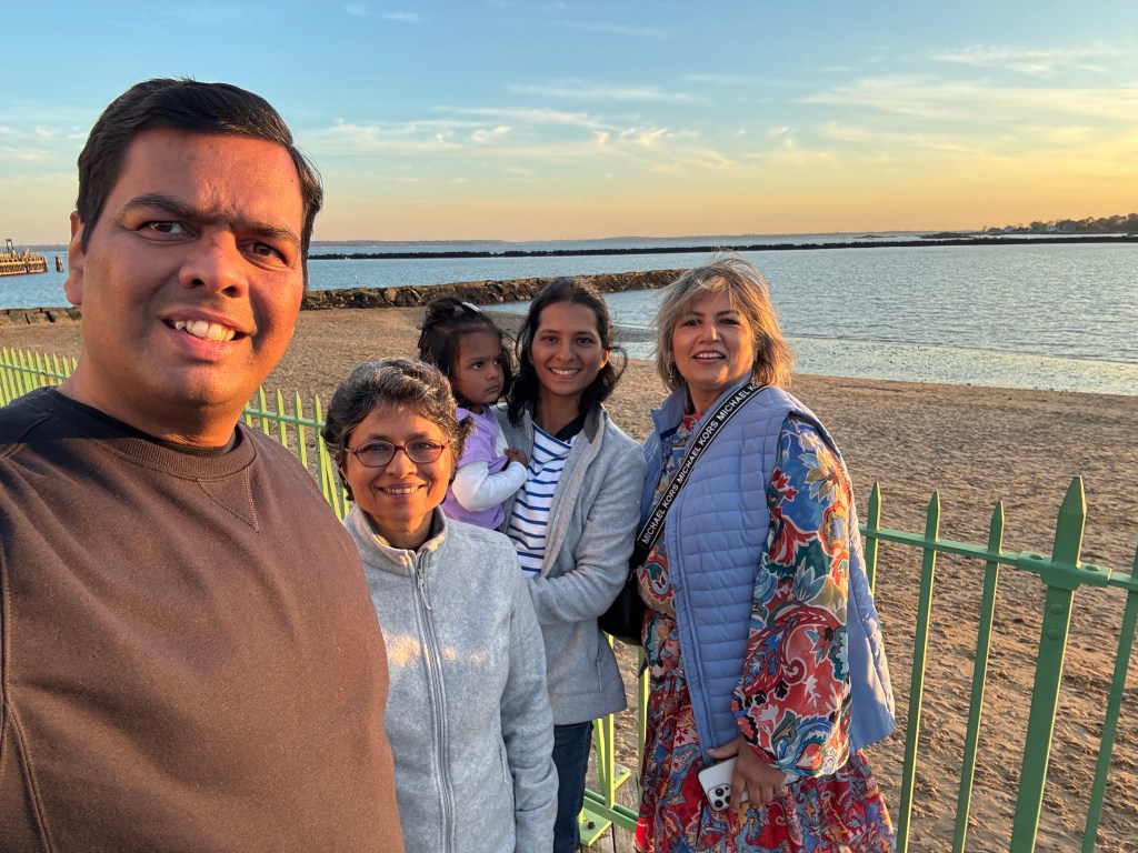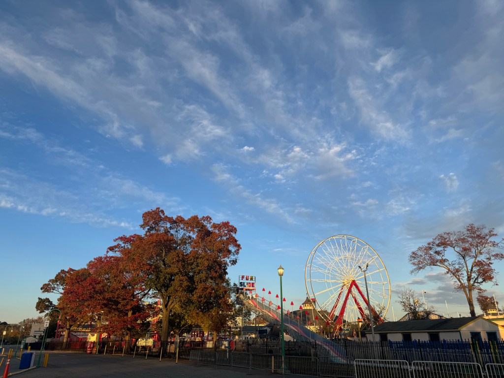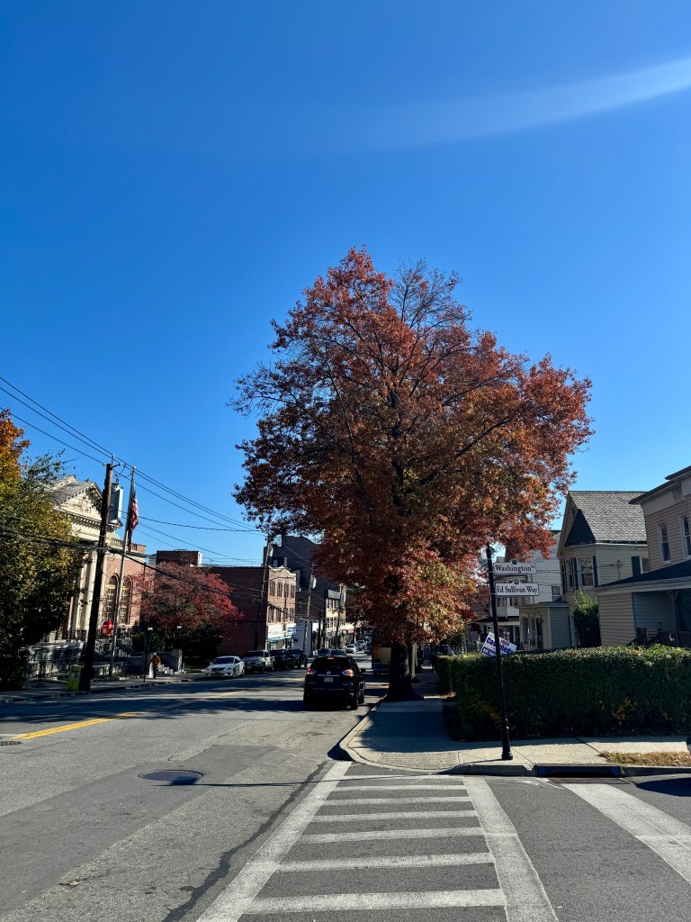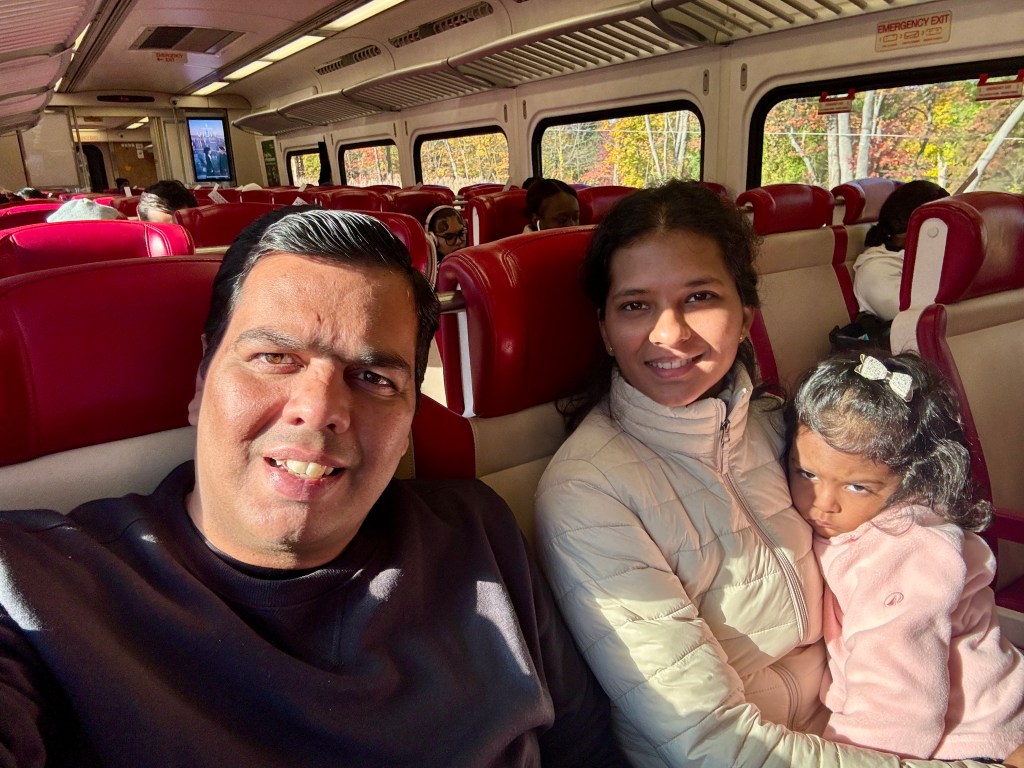 From there, we caught a train to Port Chester. The ride was short but filled with the kind of conversation that drifts easily — the kind that only happens when family is together and no one’s in a hurry. Outside, the trees flashed their colors like they knew their season was almost over — orange, crimson, amber — a whole palette painted across the Hudson line.