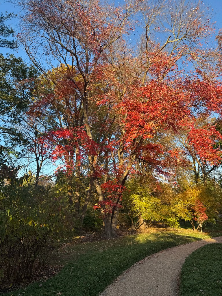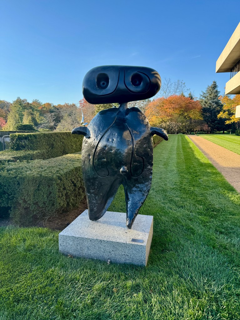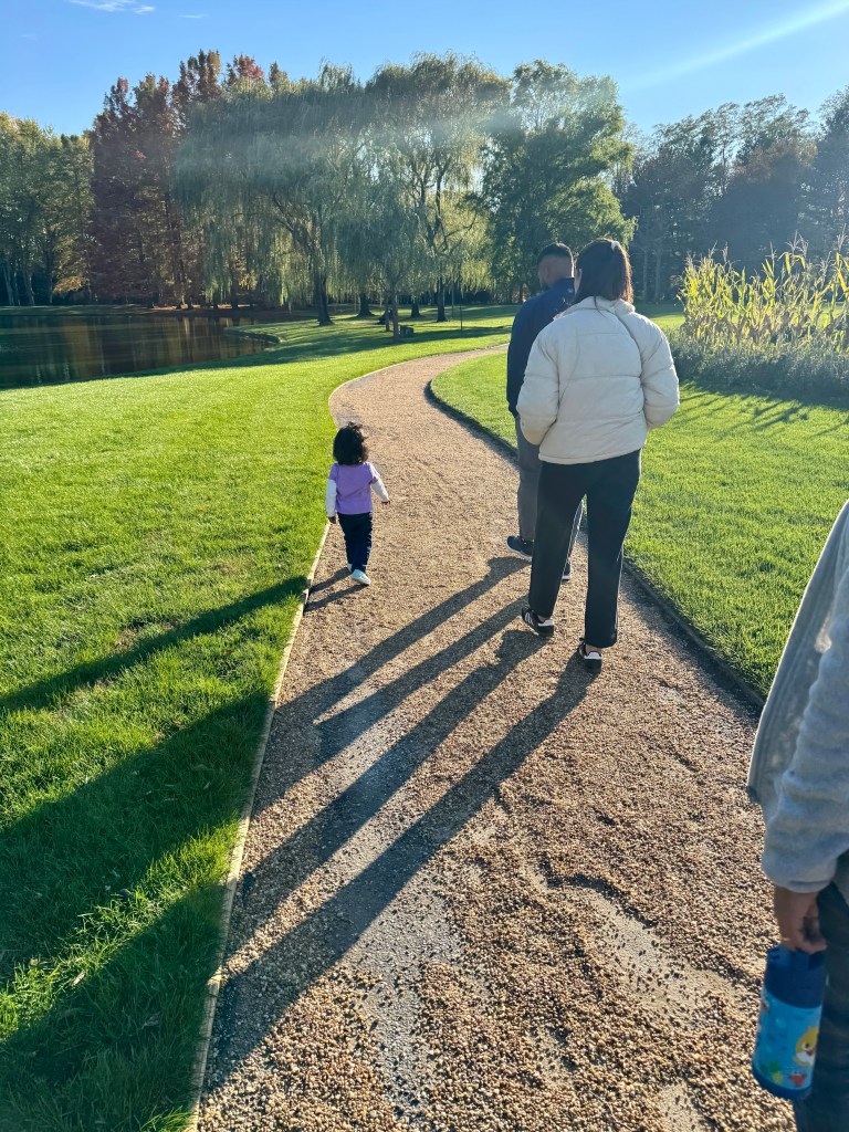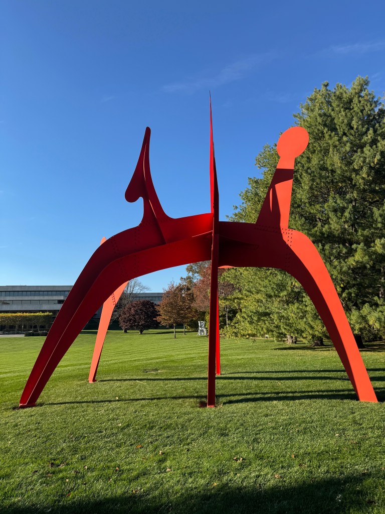 The afternoon took us to the Pepsi Park sculpture garden — a quiet surprise filled with open skies, striking art, and trees dressed in fall’s finest. This is the headquarters of Pepsi, located in Harrison. We took more photos than we’ll ever print, but each one tried to capture the way the sunlight hit the leaves just right, or how Gabby’s laughter carried in the breeze.