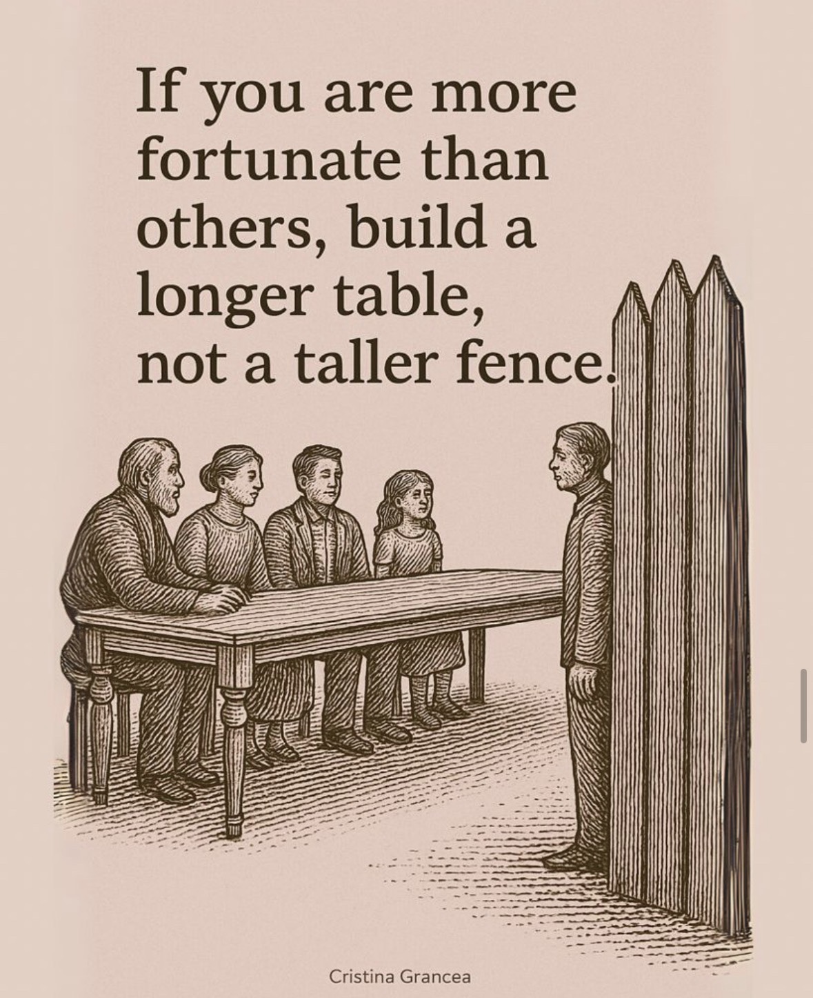 A longer table, though—now that’s a different story. It’s messy. It’s unpredictable. It requires grace. But it also fills the room with the kind of sound fences never make: conversation, laughter, understanding, belonging.