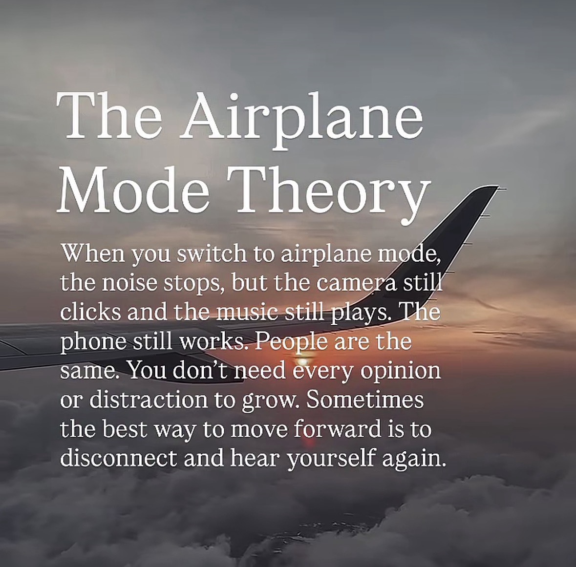 Switching to your own version of airplane mode isn’t about isolation. It’s about recalibration. You’re not cutting the world out; you’re letting yourself back in. You’re reminding yourself that your thoughts, your creativity, your sense of direction don’t depend on constant external validation. They work just fine on their own. Better, even.