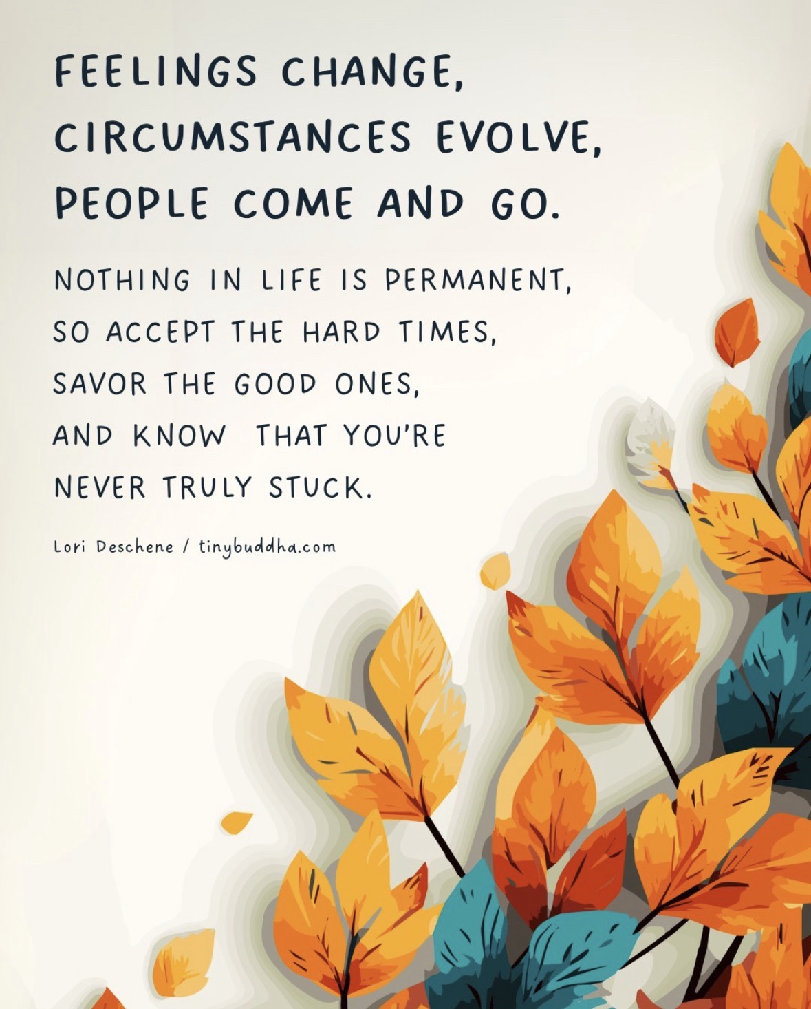 The trick is learning to sit calmly in the middle of all this motion. To understand that the hard moments don’t define you and the joyful ones don’t owe you permanence. When you accept that life is constantly reshaping itself, you stop clinging so desperately to what’s slipping and you stop fearing what’s coming. You start trusting that you can handle the changes, even the ones you didn’t choose.
