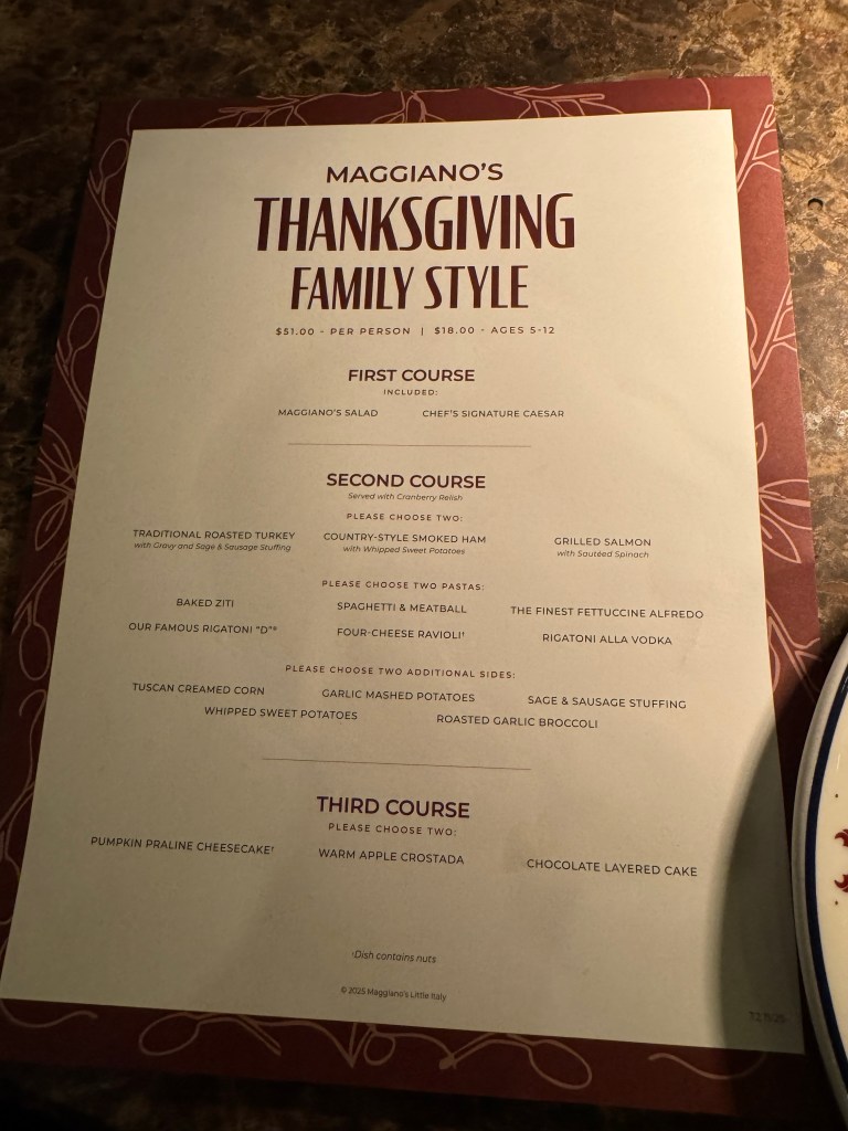 We kicked things off the way any holiday weekend should: with a comforting, indulgent dinner at Maggiano’s. Big portions, familiar flavors, and that cozy buzz of families doing exactly what we were doing—slowing down, catching up, and eating a little more than planned. It felt like the perfect start to a weekend meant for togetherness.