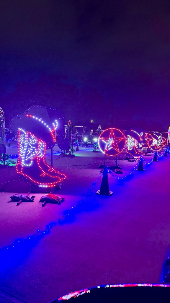 That evening, we took a relaxed drive through holiday lights. No rushing, no getting out of the car—just glowing tunnels of color, soft music, and that quiet magic that Christmas lights seem to bring, especially when seen through a child’s wide-eyed wonder.