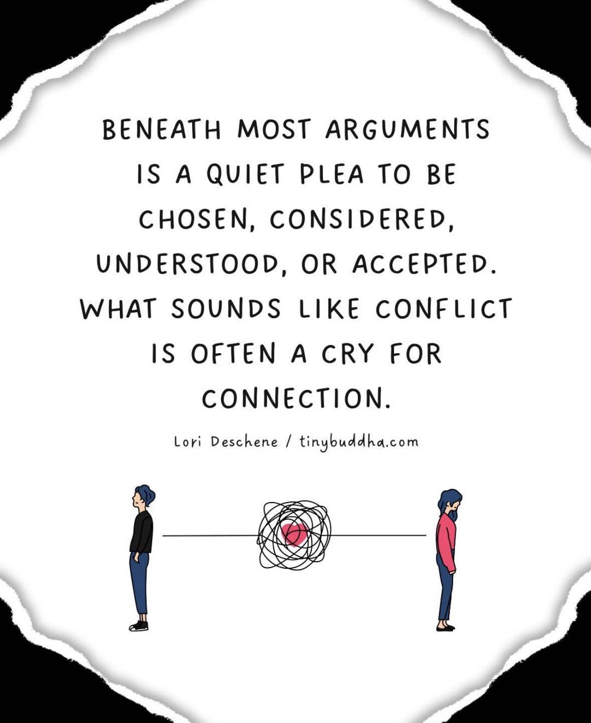Connections don’t break because of conflict. They break when we forget to look beneath it. When we forget that the person standing across from us—whether it’s a partner, a friend, a sibling, a colleague—just wants to be understood. When we treat arguments like battles instead of invitations. When we react to the surface and ignore the depth.