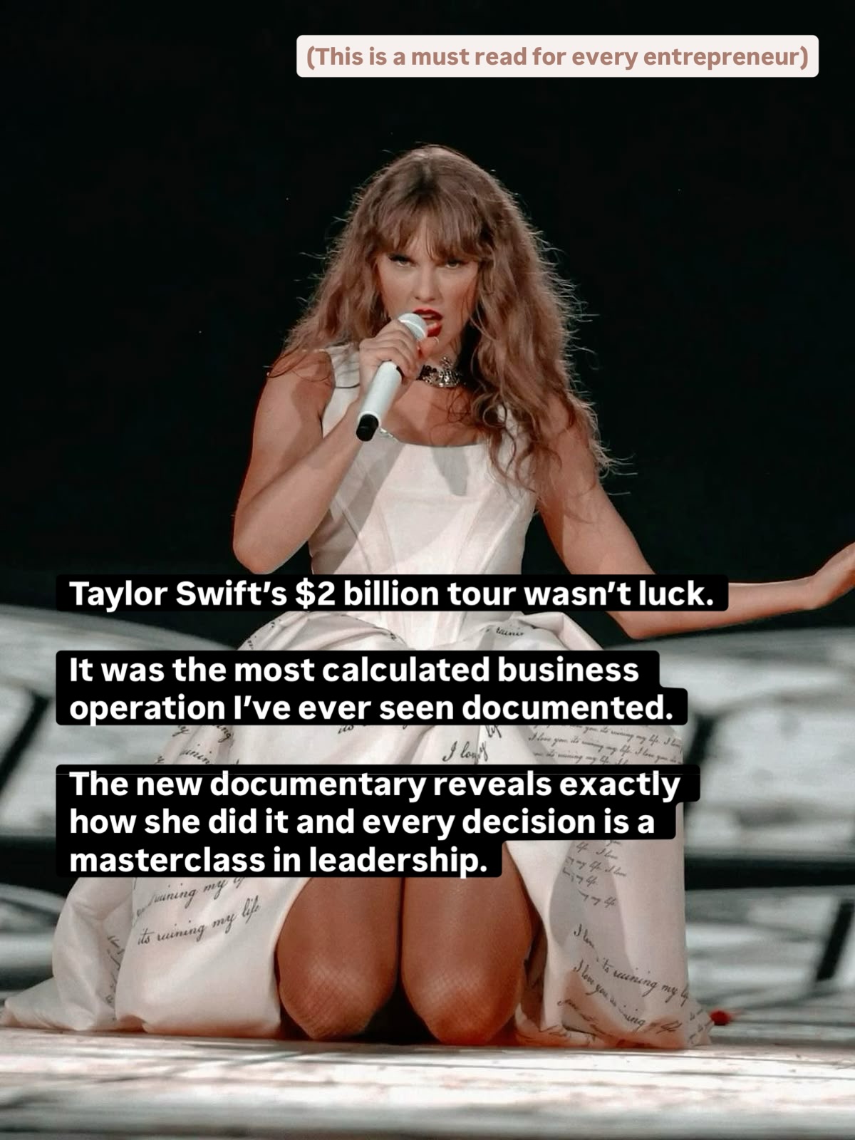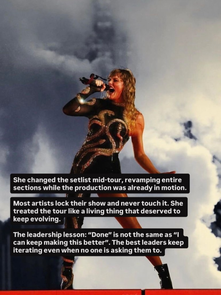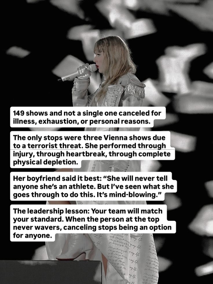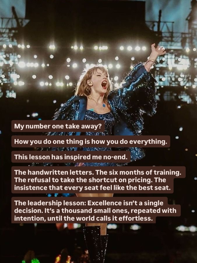 It’s easy to look at a $2 billion tour and call it talent, timing, or luck. But when you look closer—really look—you see something else entirely. You see preparation so intense it borders on obsession. Decisions made months, even years, in advance. A relentless respect for craft, people, and the long game. What looks effortless from the outside is actually the result of precision, discipline, and deeply intentional leadership. This carousel isn’t about music or fame. It’s about what sustainable excellence actually looks like when no one is watching—and why that mindset applies far beyond a stage. Thanks Natalie for this
