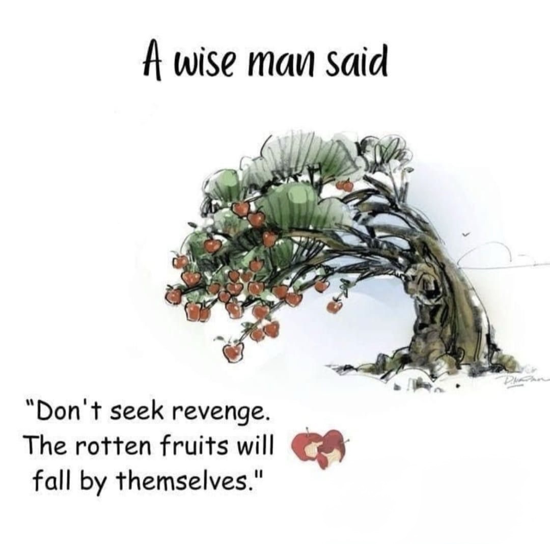 A wise man once said, “Don’t seek revenge. The rotten fruits will fall by themselves.”
