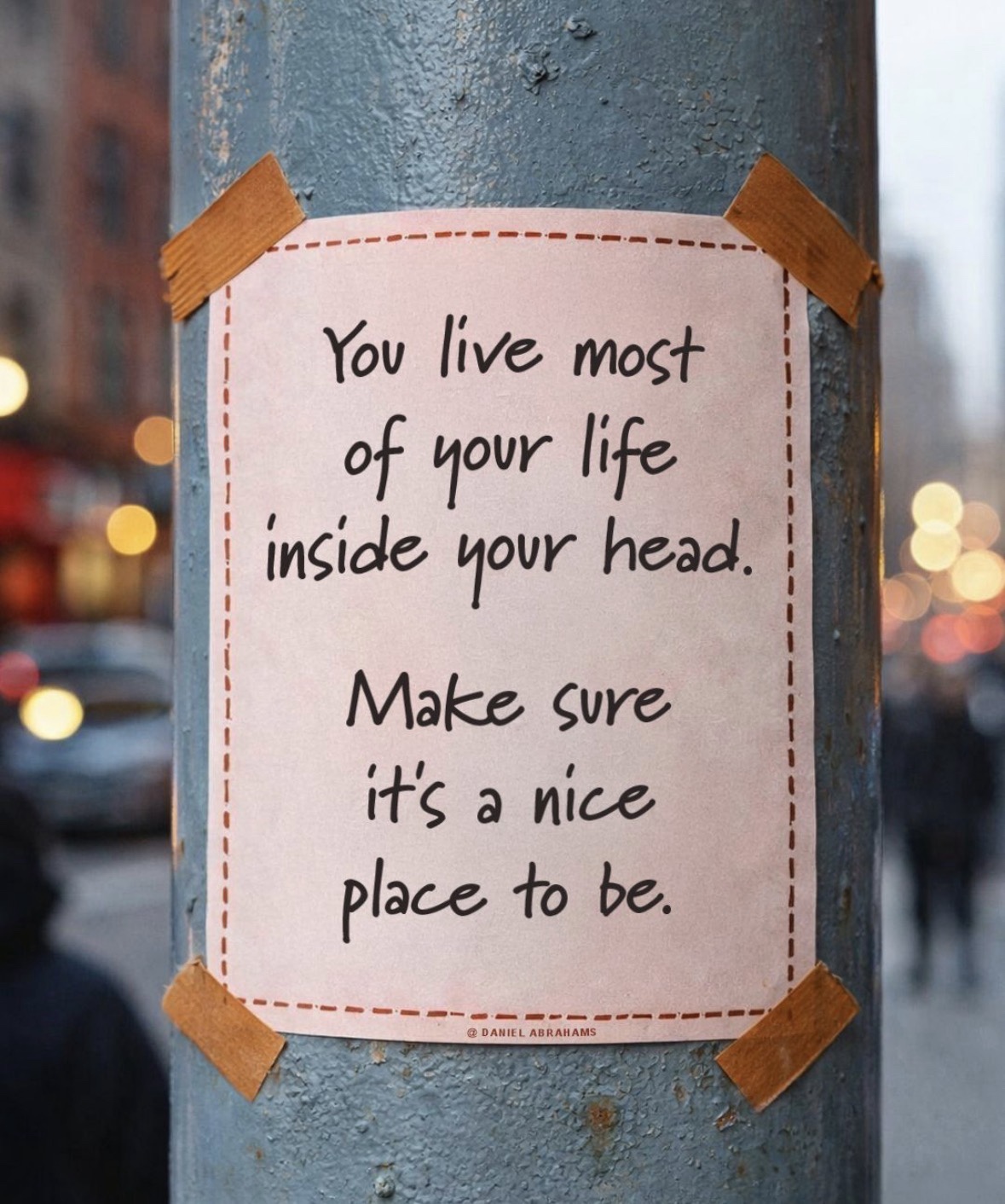 That’s where the real “you” spends most of the time—thinking, replaying, planning, worrying, judging, hoping, regretting, imagining, comparing, daydreaming… all of it.