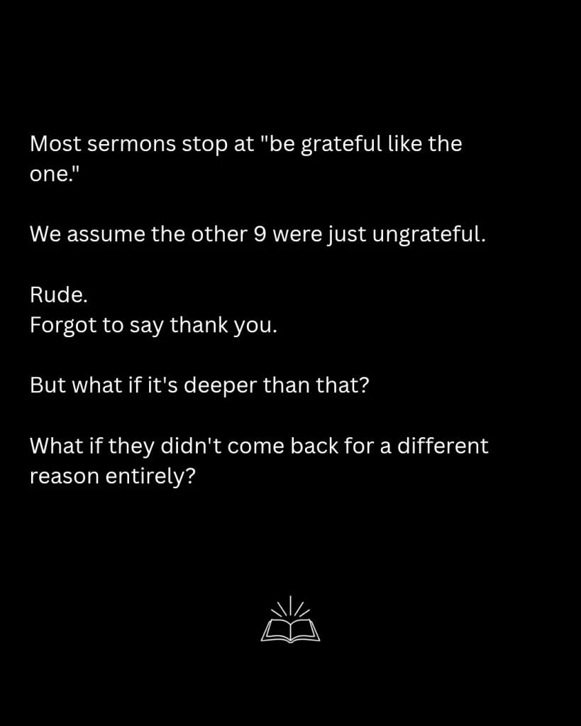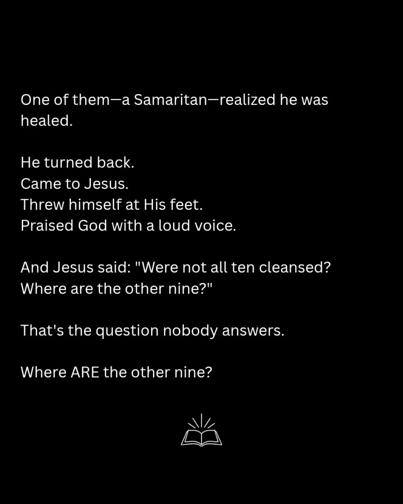Ten voices cried out in desperation. Ten bodies were restored in an instant. Yet only one turned back. The miracle reached them all, but gratitude transformed just one. The others received healing and kept moving, eager to reclaim life as it was before pain interrupted it. One paused long enough to recognize the source of mercy—and that pause changed everything.