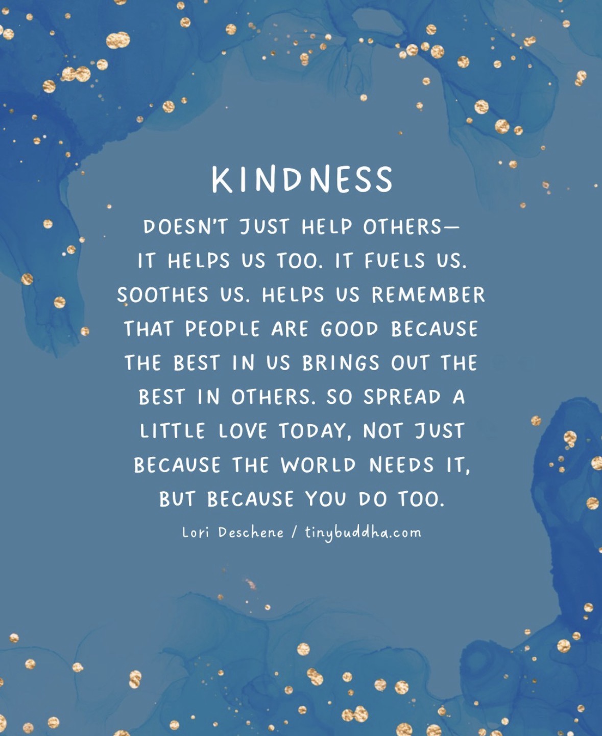 “Kindness doesn’t just help others. It fuels us. It soothes us. It helps us remember that people are good.”