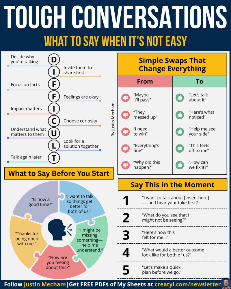 You can say the hard thing— Without making it harder: Most people walk into hard conversationswithout a plan— So they either explode…or say nothing at all. Both make things worse. But it doesn’t have to be that way. There’s a better way to speak up—without guilt, confusion, or fear. Use this simple path to startContinue reading “Tough Conversations”