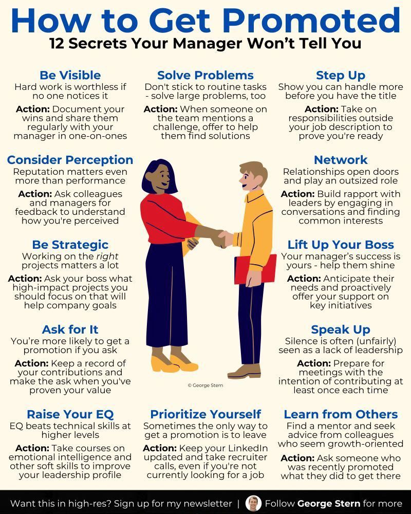1. Get Noticed↳ Hard work is invisible if no one sees it↳ Action: Keep track of your achievements and regularly share them with your manager during one-on-ones 2. Tackle Problems↳ Go beyond your daily tasks and help solve big challenges↳ Action: When a teammate mentions an issue, volunteer to help find a solution 3. LeadContinue reading “12 Secrets Your Manager Won’t Tell You”