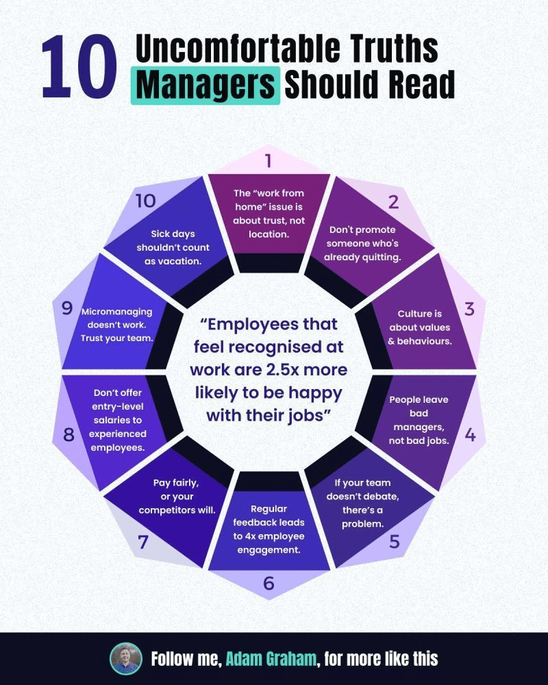 When good employees leave, it’s often your fault. Here’s what managers need to understand: 1. If top talent is quitting, look at your management style. ↳ People leave managers, not jobs. ↳ Leadership determines loyalty. 2. Employees want to grow. ↳ Without opportunities, they’ll outgrow your company. ↳ Development isn’t a perk—it’s an expectation. 3.Continue reading “13 Brutal Truths Your Manager Needs To Know”