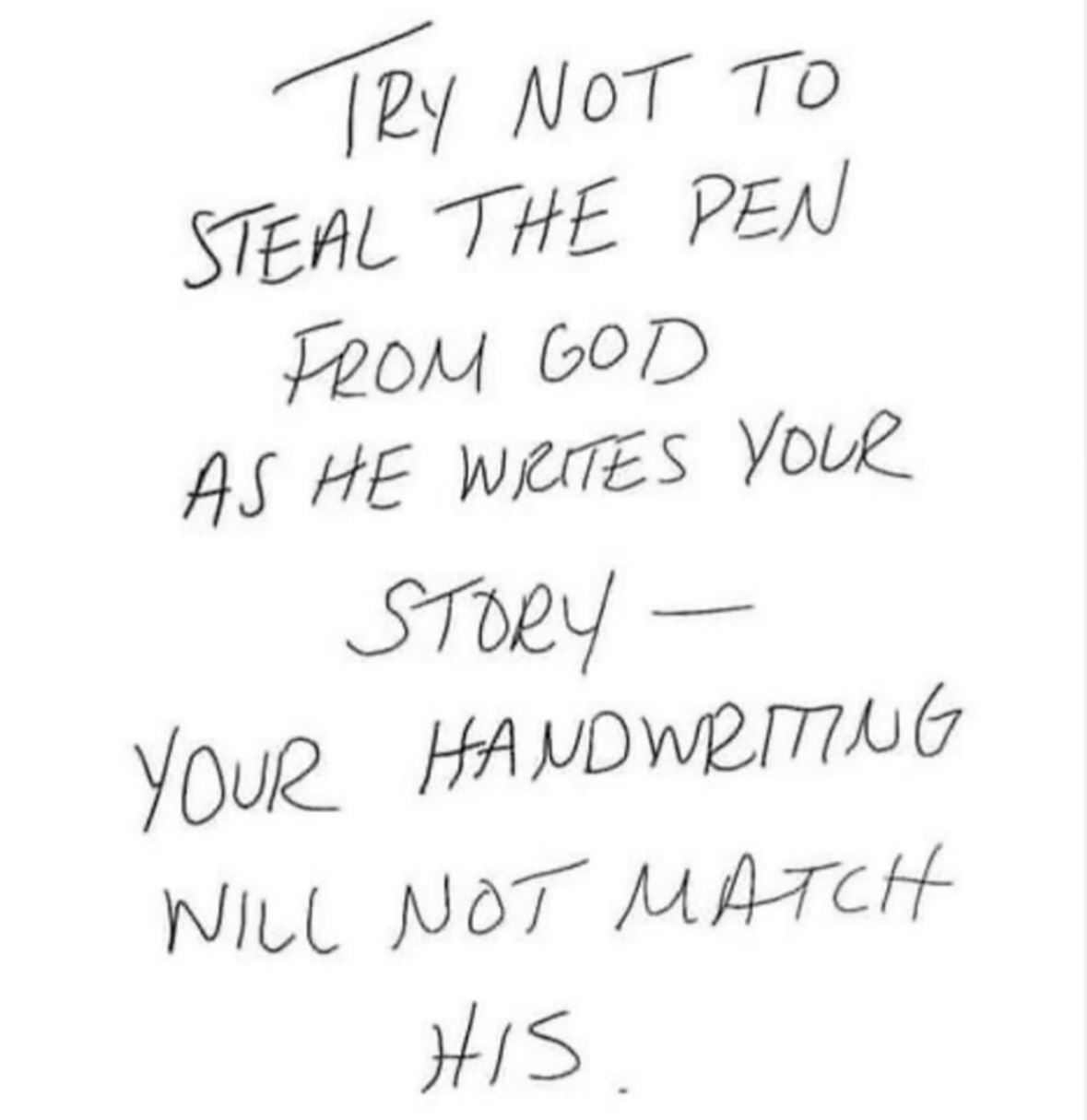 Life often feels like a story we are desperate to control. We plan, we push, we rewrite—but sometimes, our efforts lead to frustration rather than fulfillment. The quote “Try not to steal the pen from God as He writes your story—your handwriting will not match His” is a powerful reminder that our lives are bestContinue reading “Trusting the Author of Your Story”