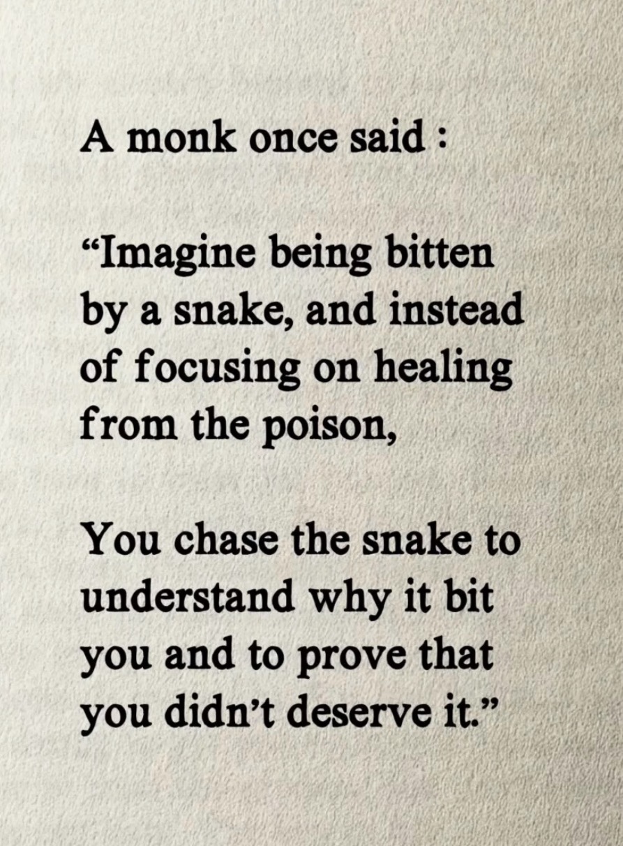 Came across this quote sometime back and it has stayed with me long after I first heard it. Imagine being bitten by a snake, and instead of focusing on healing from the poison, you chase the snake. You want to know why it bit you. You want to prove that you didn’t deserve it. YouContinue reading “Don’t Chase the Snake”